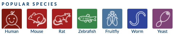 The Popular Species section lists commonly used model organisms, allowing for quick selection of their genome browsers. Clicking on a species will display the default assembly version for that organism.