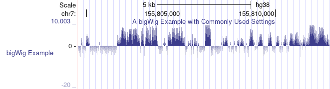 The basic trackDb configuration for a bigWig track is similar to a bigBed track, as all tracks require the same basic